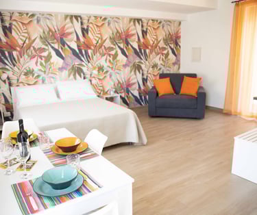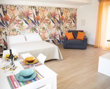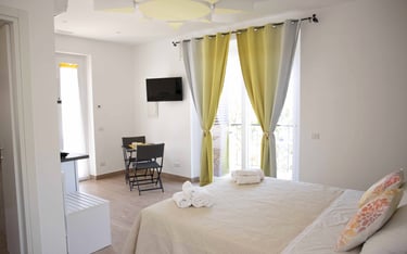 Camera luminosa e vivace, ideale per chi ama i colori caldi e l’atmosfera solare della Costiera.